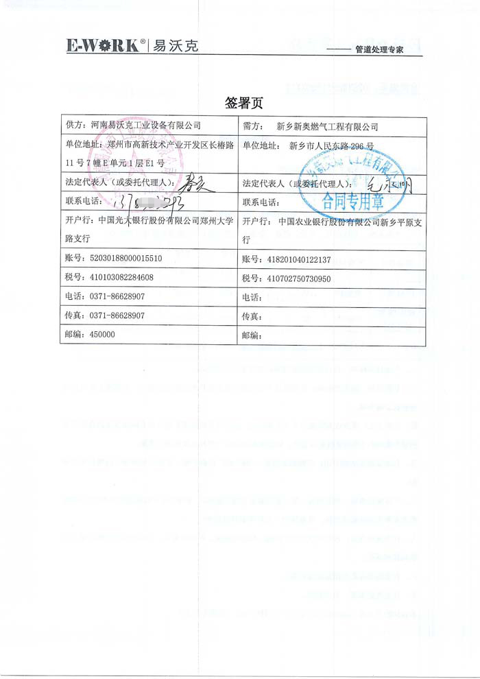 2015年河南新鄉(xiāng)新奧燃氣工程有限公司合作業(yè)績